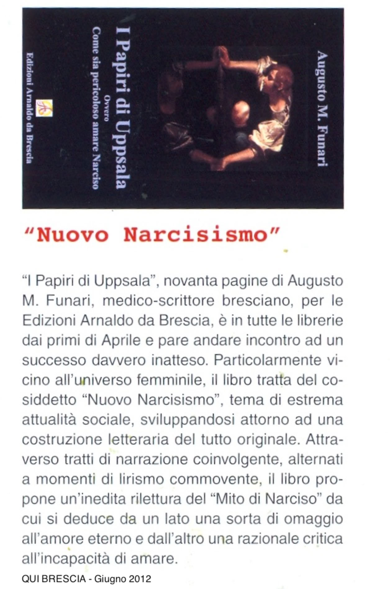 La casuale scoperta di antichi manoscritti greci in una bottega antiquar-ia svedese consente di giungere a un’inedita rilettura del “Mito di Narciso” e quindi del “Narcisismo”. Sulle prime il testo si presenta assai poco cred-ibile e talvolta inverosimile ma via via che la traduzione procede si rivela non solo del tutto plausibile, ma anche entusiasmante e commovente.