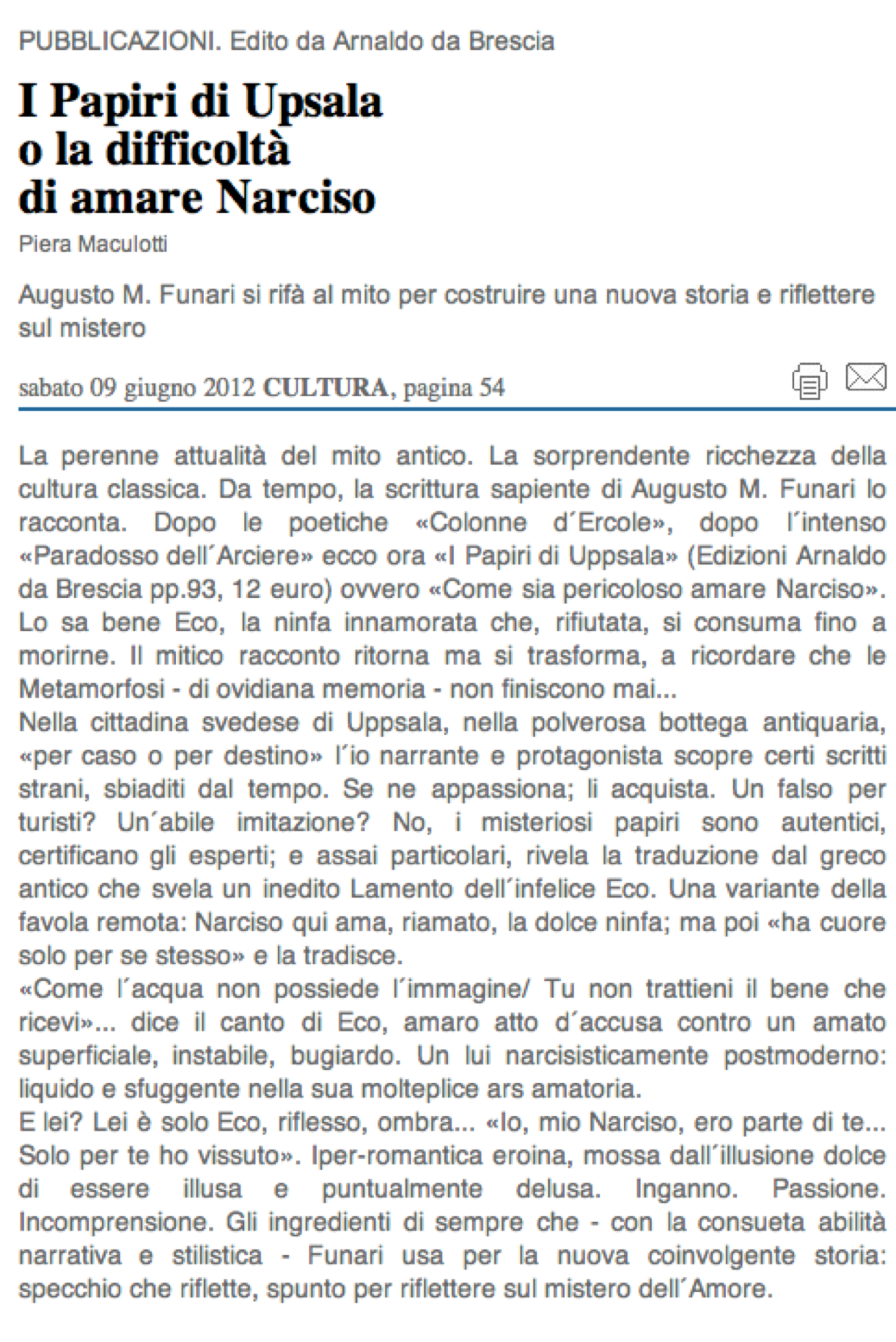 Gli anonimi “papiri”, dunque, plasmano un inedito e intrigante rifer-imento mitologico “dalla parte del più debole” mostrandoci come sia, in realtà, più giusto parlare del “Mito di Narciso e di Eco”.